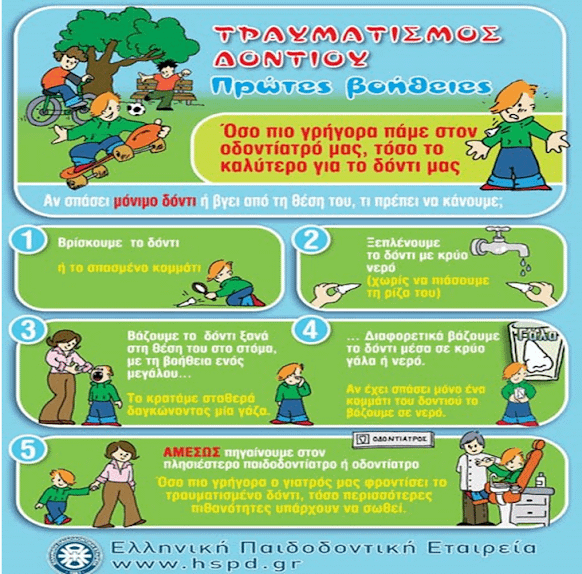 του παιδικού δοντιού αν βρεθεί διατηρείται σε νερό ή φυσιολογικό ορό. Ο/Η Οδοντίατρος ή ο εξειδικευμένος Παιδοδοντίατρος μπορεί να τα συγκολλήσει ή να