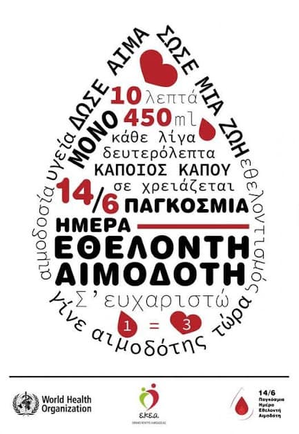 Παγκόσμια ημέρα εθελοντή αιμοδότη